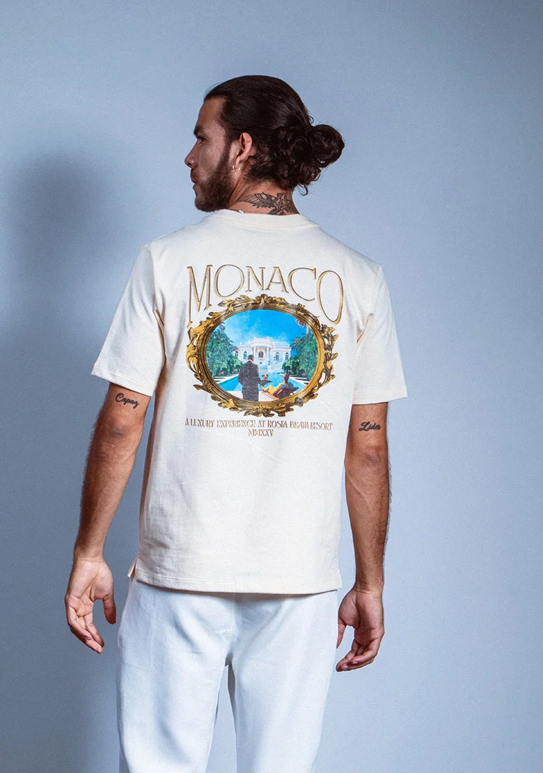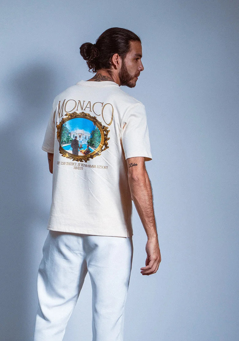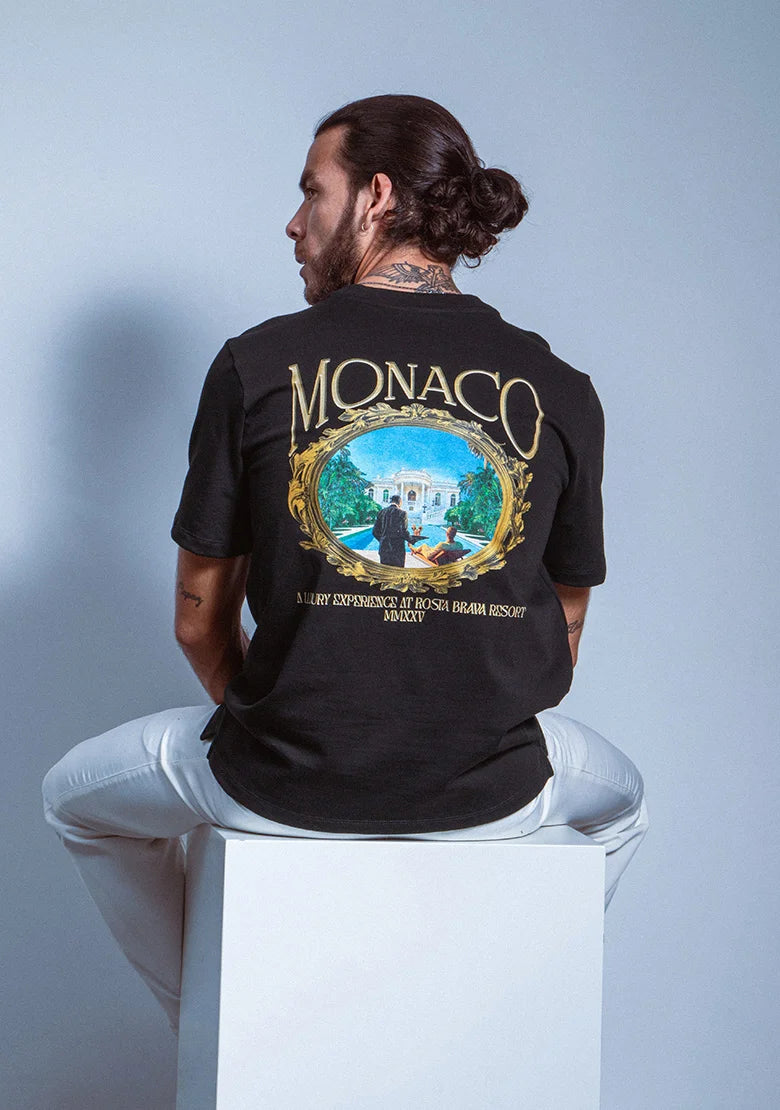 Una pieza que irradia lujo. El emblema dorado frontal aporta un toque aristocrático, mientras la ilustración trasera enmarca la esencia icónica de Mónaco con un estilo artístico y sofisticado. Elaborada en algodón 100% peruano de 270G, con estampados en relieve, 3D y policromía de alta definición que elevan cada detalle.